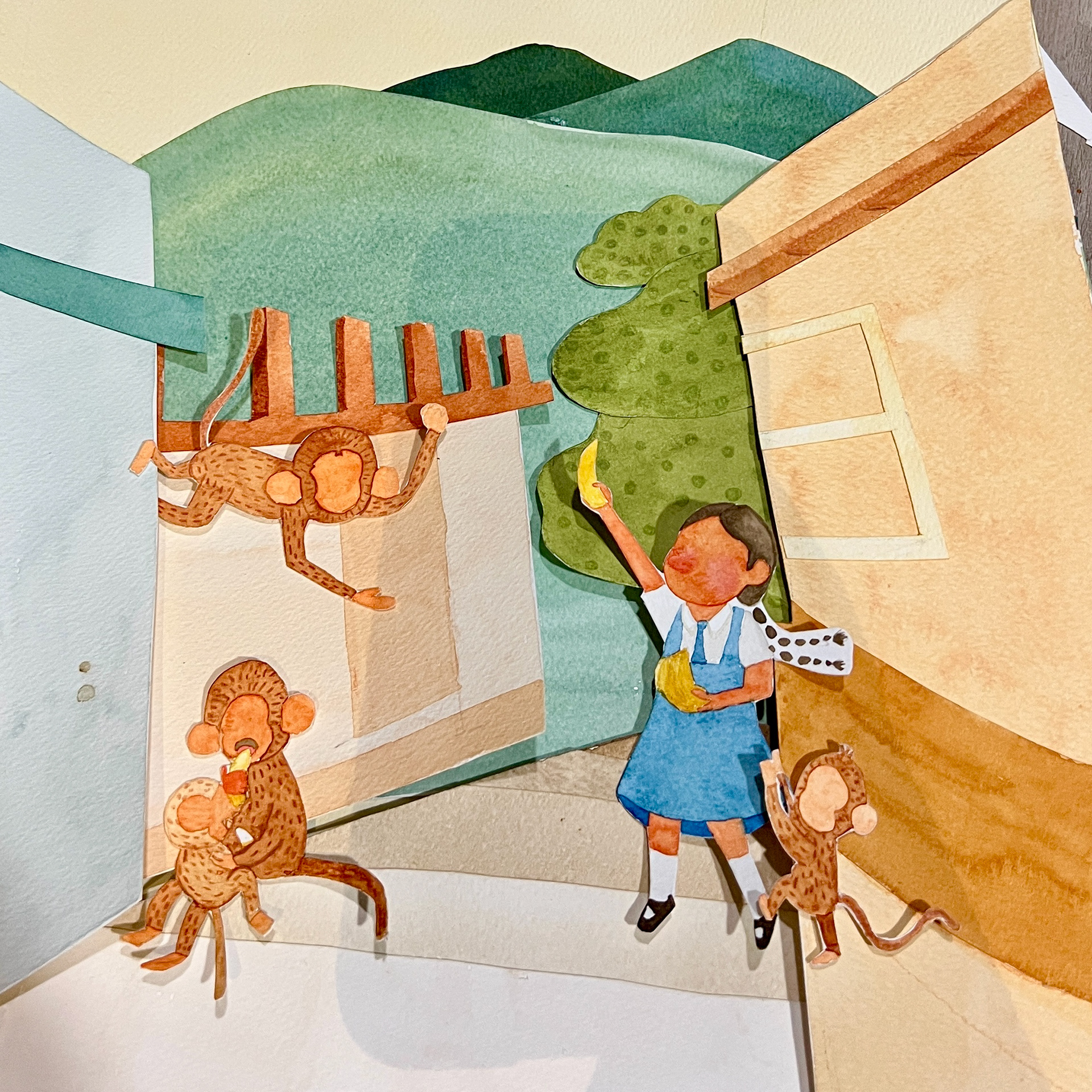 Inspired by local narratives and landscapes, it captures the lively interaction between Munni and mischievous monkeys in Sikkim's charming setting.