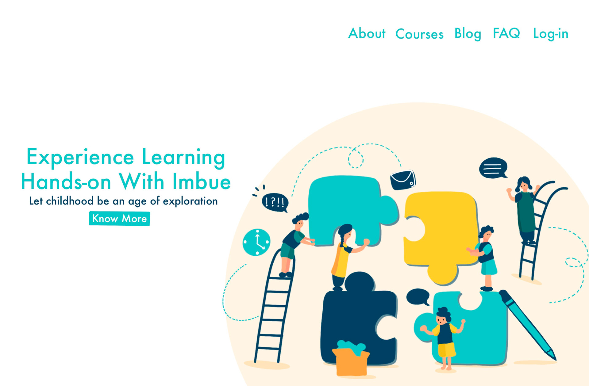 Website revamp for Imbue Education. Imbue Education fuels children creativity and provides with courses to learn by doing experiments. Bright colours add fun to the illustrations. Rounded curves on vectors give friendly elements.